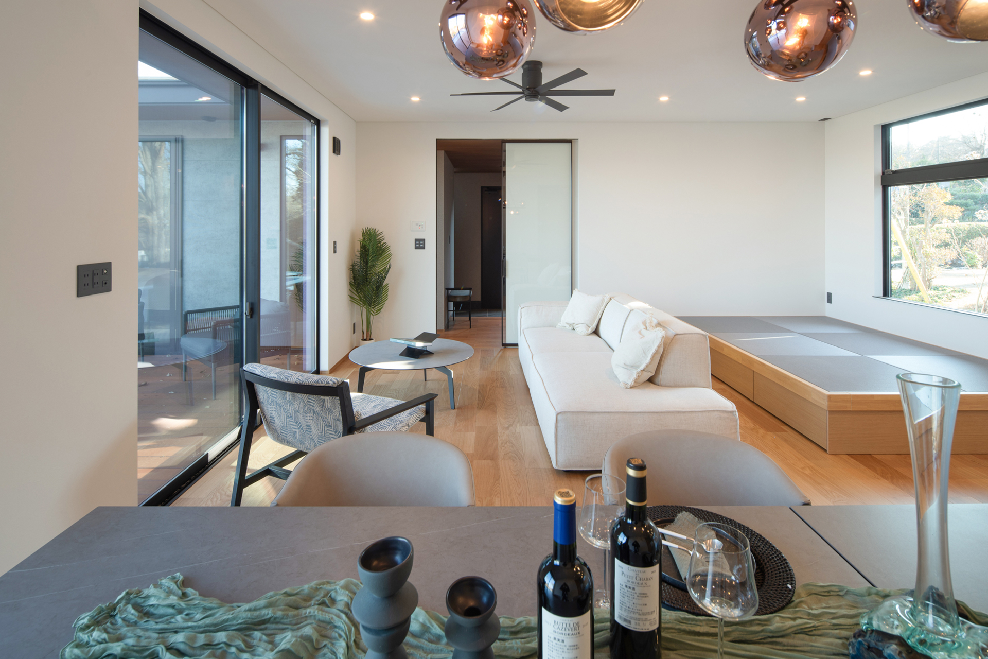 昼の時間は、この家が持つ開放感と静かな上質さを、いちばん素直に味わえるひとときです。