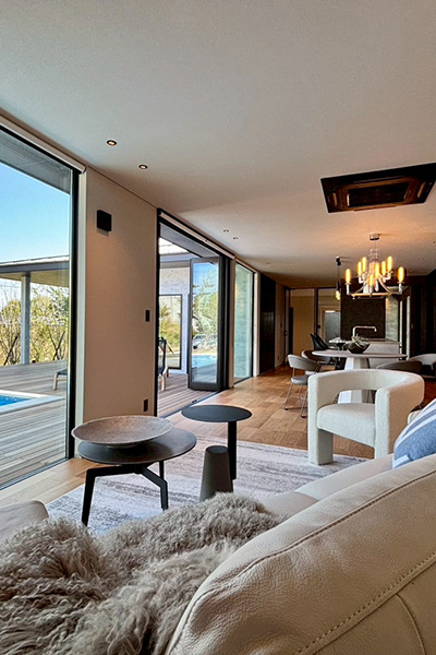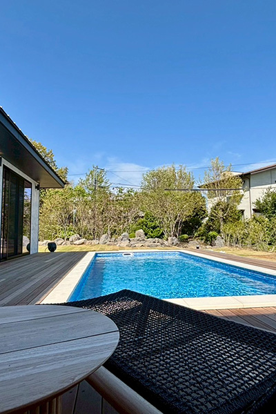 伊東市八幡野の新築平屋別荘で、ジャグジーやプール、ヤシの木に囲まれながら、上質な寛ぎのひとときをお過ごしください。