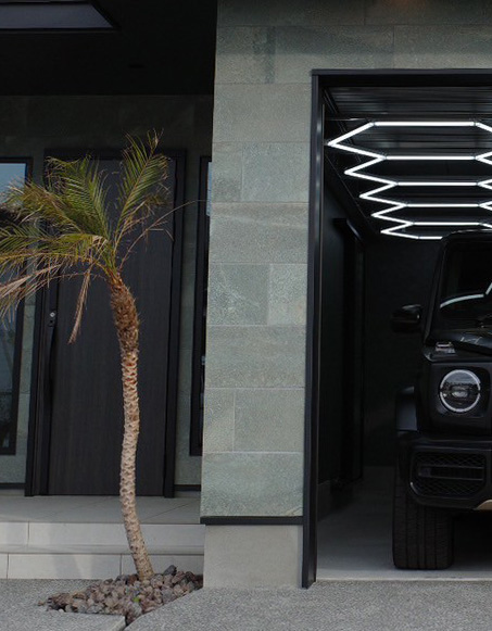 大切な愛車を風雨から守る、機能美を極めたビルトインガレージを完備。電動オーバースライダーにより、運転席に座ったままスムーズな入出庫が可能です。趣味の道具を並べて、ガレージライフを堪能する悦びを提案します。