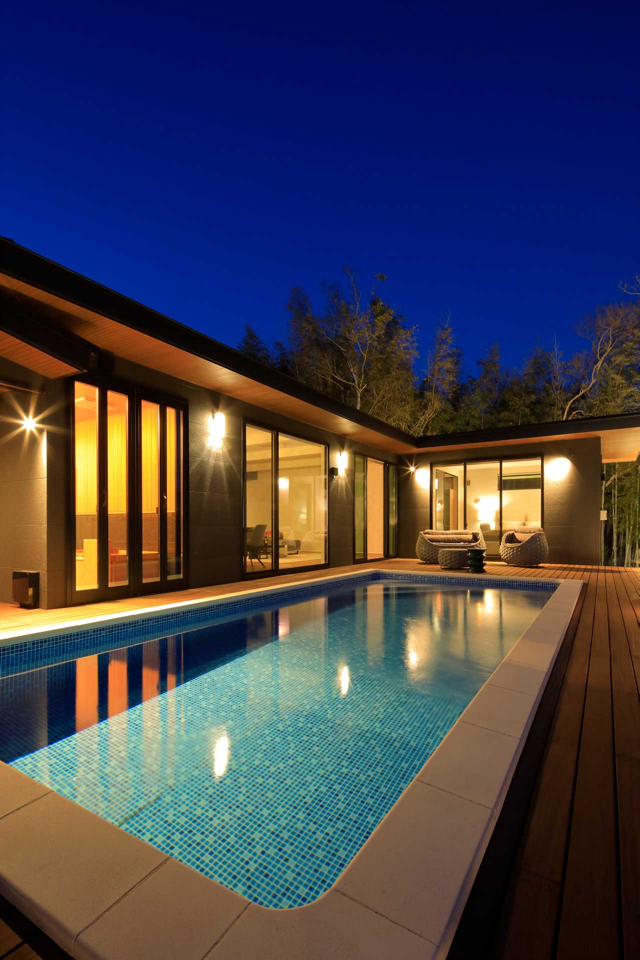 森と海が交差する、プール付き温泉邸宅