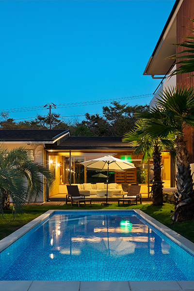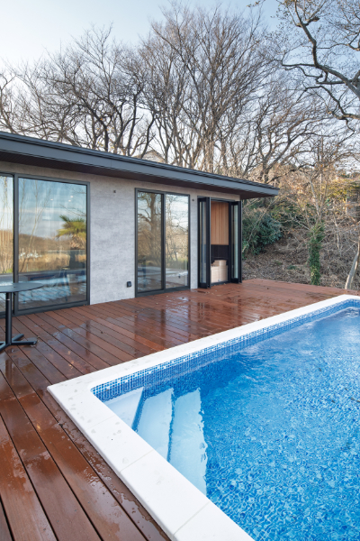 | 特徴 | 伊豆急行「富戸駅」から車で5分。 敷地内にはプライベートプールと天然温泉を備え、 海風と森の香りに包まれながら、贅沢なリゾートライフをお楽しみいただけます。 別荘としてはもちろん、長期滞在やワーケーションにも最適な一邸です。 |