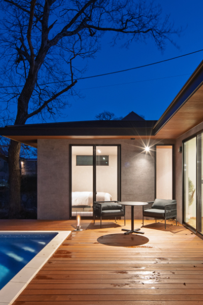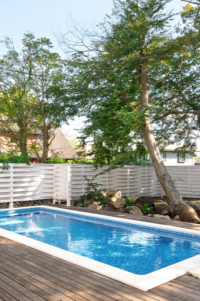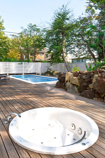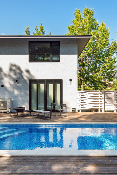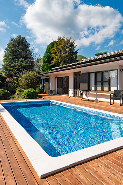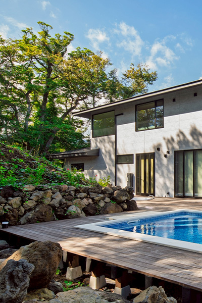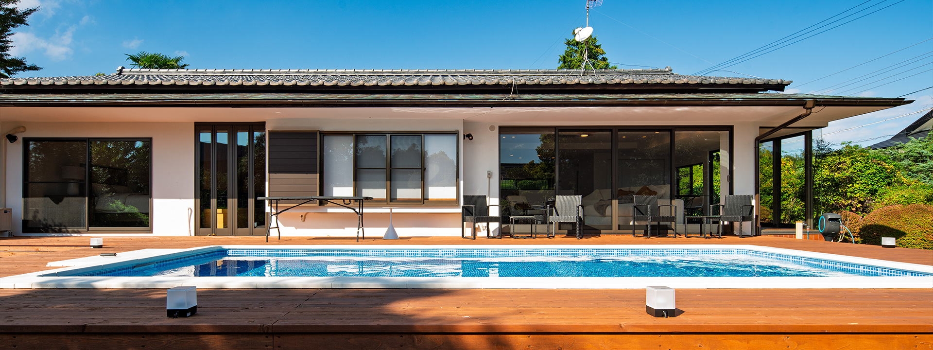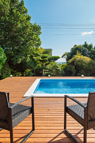 - 約12帖のウッドデッキ付きプールでアウトドアリビングを満喫